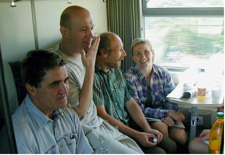 Vyzbrojení takýmto štábom, sme sa prebudili v to pamätné ráno 20.VI.2002, samozrejme všetci za pomoci všakovakých tých spánkobudičov, veď odchod bol stanovený na 5:45 / ó aké kruté, ale všetci sme sa vybičovali/. Za malého ranného zmätku som dômyselným systémom vyzdvihol baby v poradí Miška, Janka, Martinka, potom pripomínajúc preteky F1, som sa zbavil auta  v servise. Tam už bol pripravený Andrej, ktorý nás ostatných dopravil na stanicu. 5:35 hladké pristátie na stanici, rýchly výsadok! A  ak sme náhodou zabudli Andrej, tak ďakujeme! Zvítanie sa na stanici, spočítanie, nastupovanie, veľký výdych a odteraz už len všadeprítomný úsmev. Vlak sa pohol a začalo to byť skutočné.